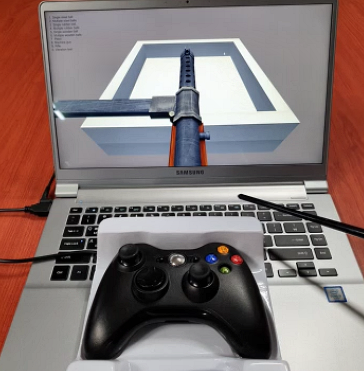 Since haptic feedback cannot be felt through a screen, the haptic actuator (DHA) was designed to hit a plastic box when it operates, so its action can be recognized by sound.